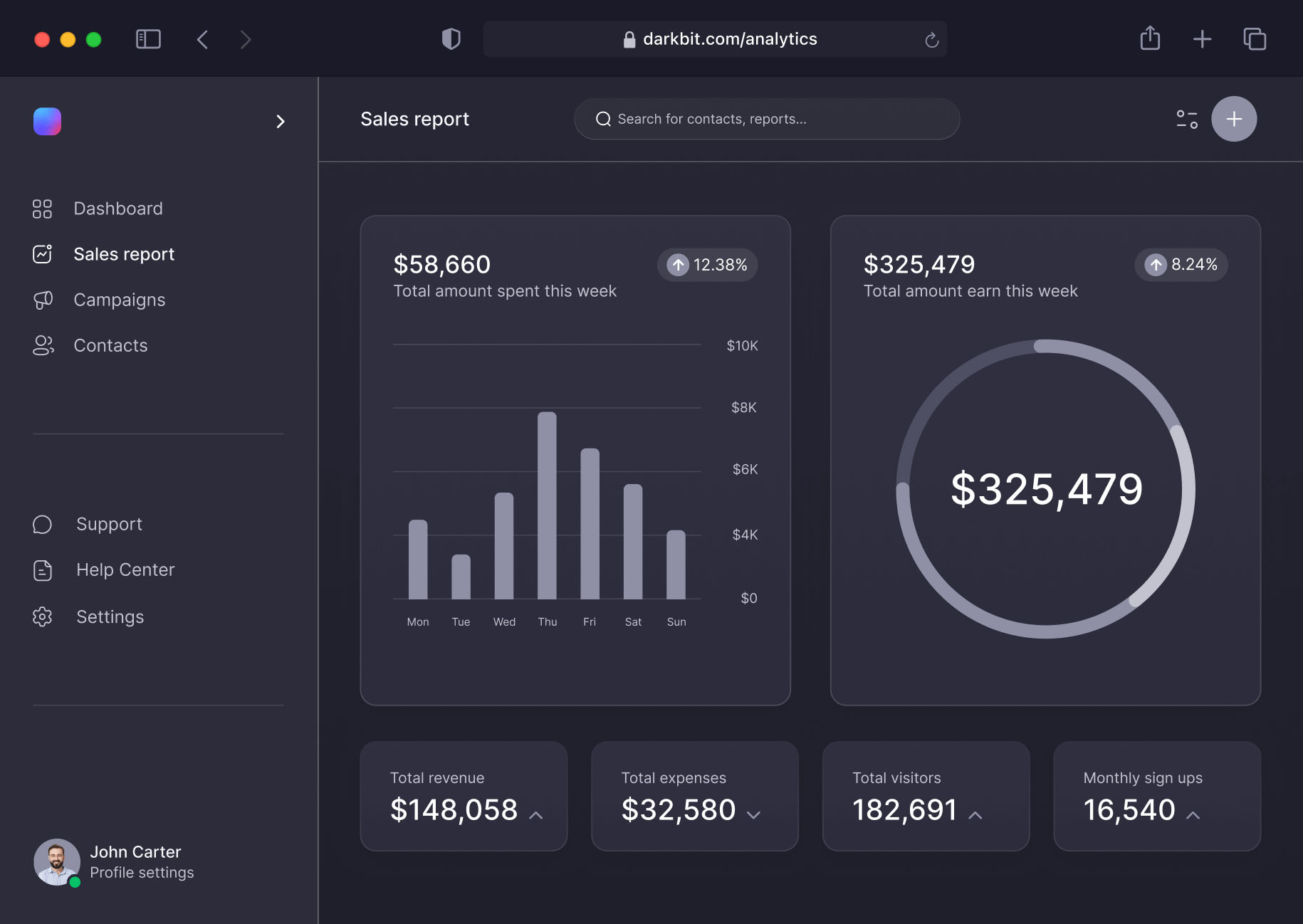 View and manage all your investments (Forex, Crypto, Stocks) in a single, unified interface with detailed performance analytics.